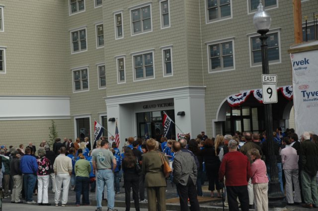 The new Victorian Plaza is already finished. The Canadian flag welcomes Canadians who come in trainloads during summeritme. Old Orchard Beach is the closest beach to Montreal.