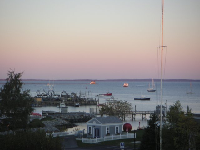 Rockland Harbor at Dusk from our room in The Tradewinds